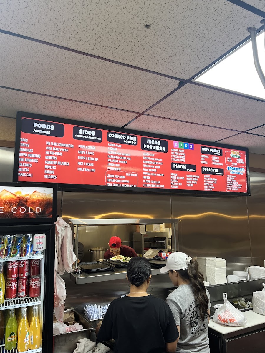 This menu is suitable for quick orders or casual dining, ideal for those seeking authentic Mexican street-style food as well as traditional plated meals. Beverage options include Coca-Cola products, which complement the food choices offered.